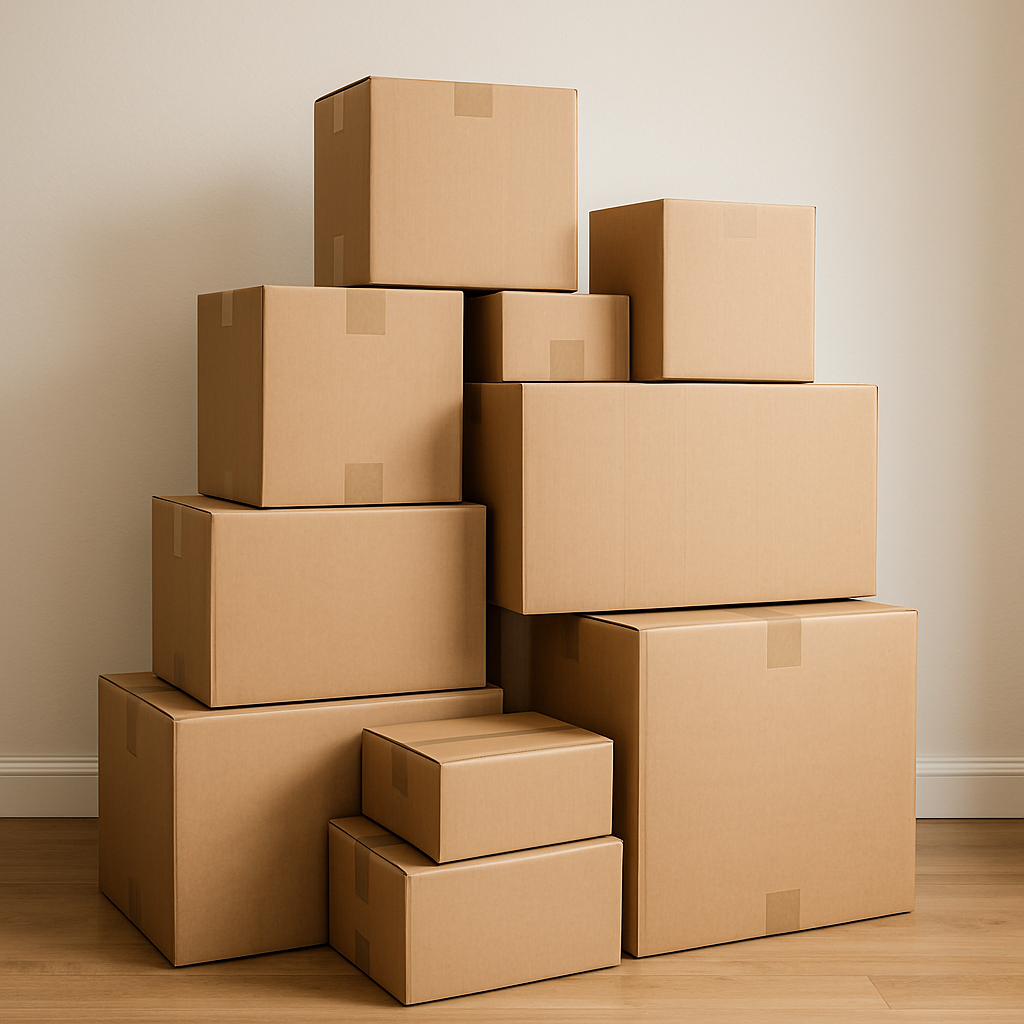 Hei, dette er omtrent slik det ser ut hos meg nå, masse pappesker stablet oppe på hverandre, å ser både rotete ut og tar mye plass.