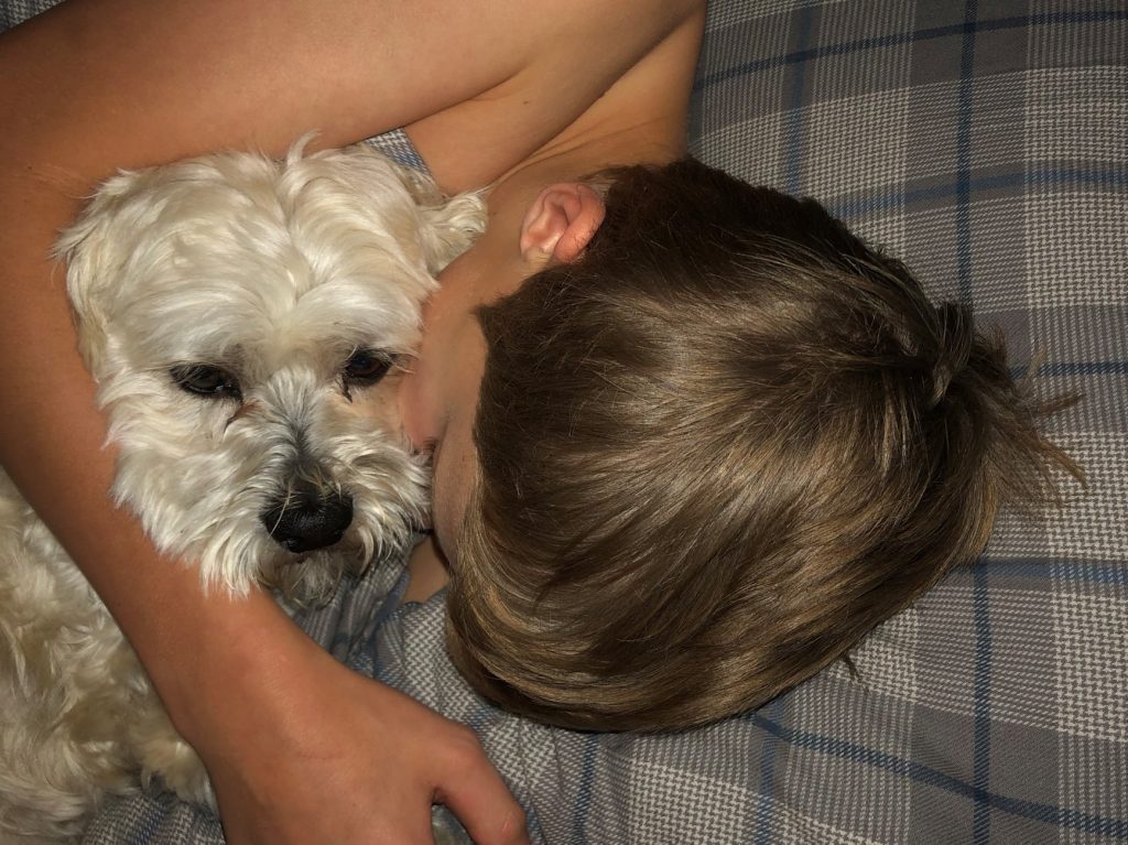 Dette er en familie hund, en som viser trygghet og kjærlighet for sin aller beste venn.