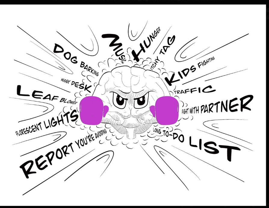 Mange synsinntrykk på en gang, vanskelig å ha fokus på det som er viktig, og en ting om gangen.